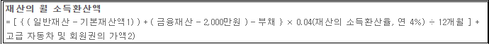 2. 기타소득이라 함은 사업소득, 재산소득, 공적이전소득, 무료 임차 소득을 합한 금액이다.